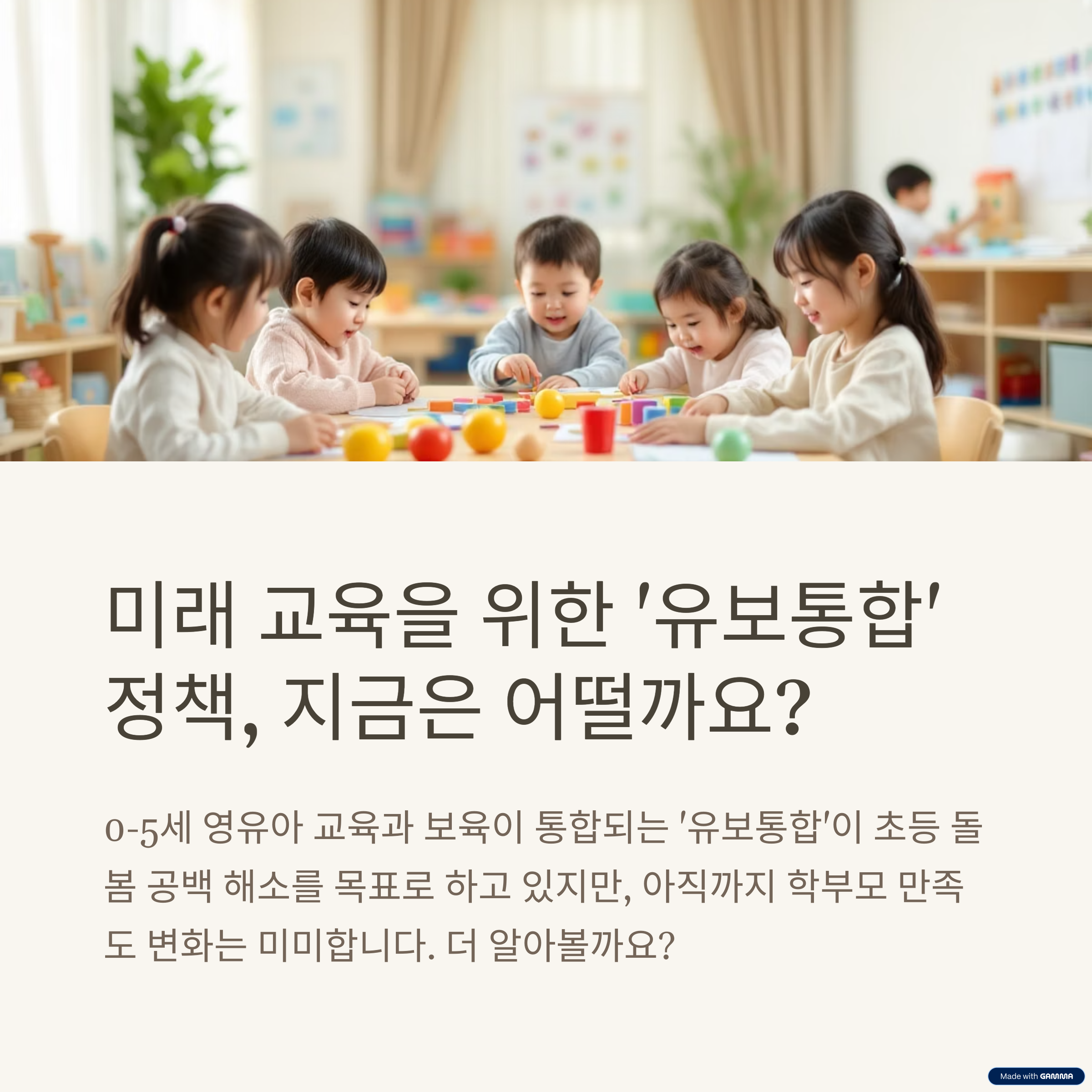 유보통합은 결국 우리 아이들과 부모 모두에게 긍정적인 환경을 제공하는 것을 목적으로 합니다.