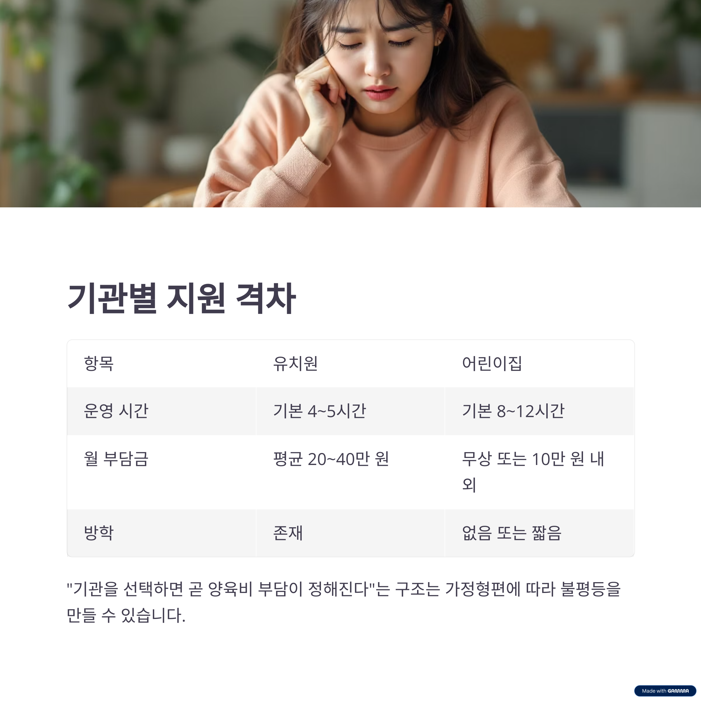 맞벌이 상황에 따라 기관을 선택해야 하는 구조 자체가 불합리하다”**는 인식이 확산되고 있습니다.