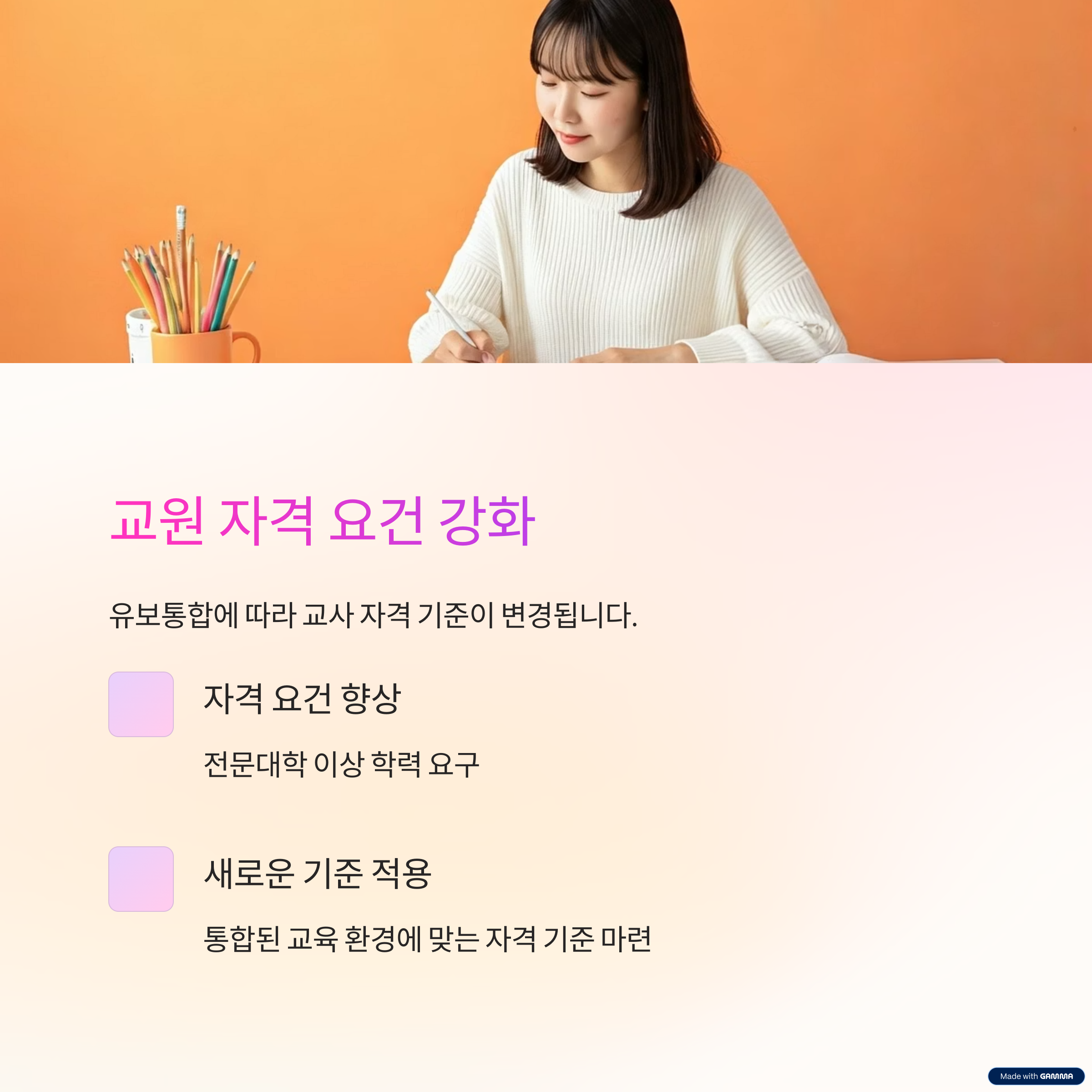 4. 교원 자격 요건이 전문대학 이상으로 향상됩니다.