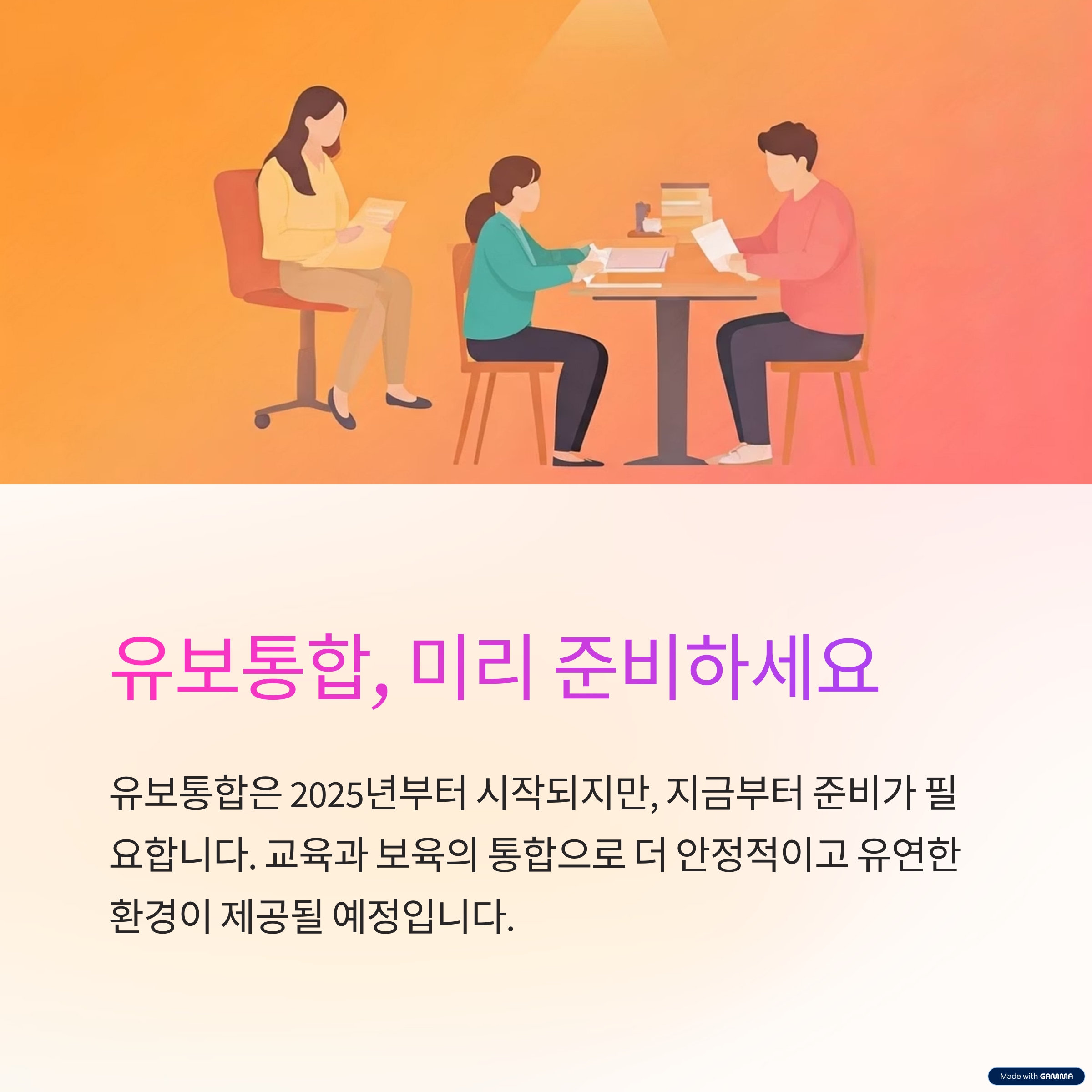 오늘은 유보통합 시행과 이에 따른 커리큘럼 변경 사항, 그리고 기존 교재 사용 여부에 대해 이야기하려 합니다.