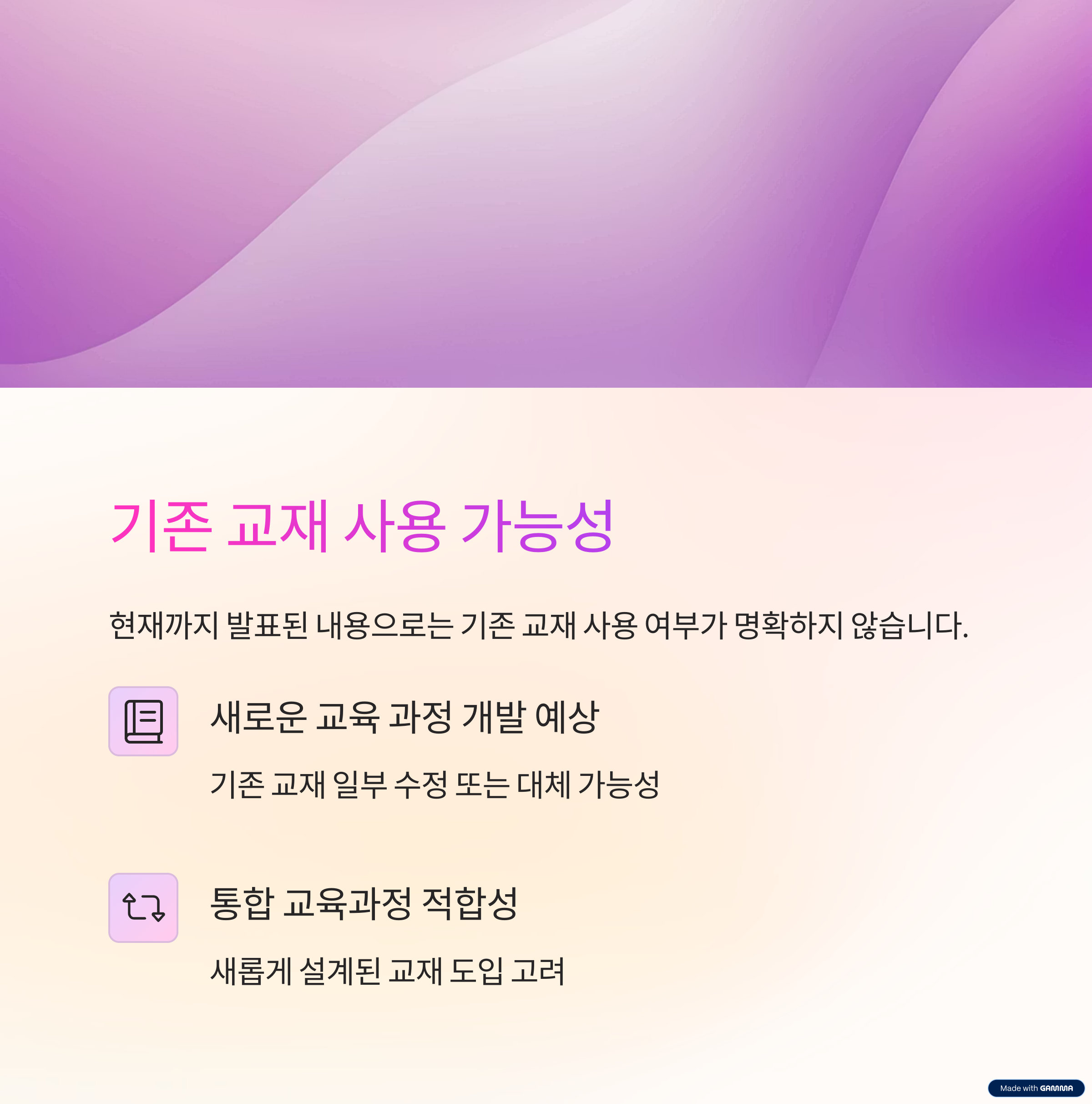 하지만 기존의 교육 과정 및 교재 활용에는 여전히 일부 불확실성이 존재합니다.