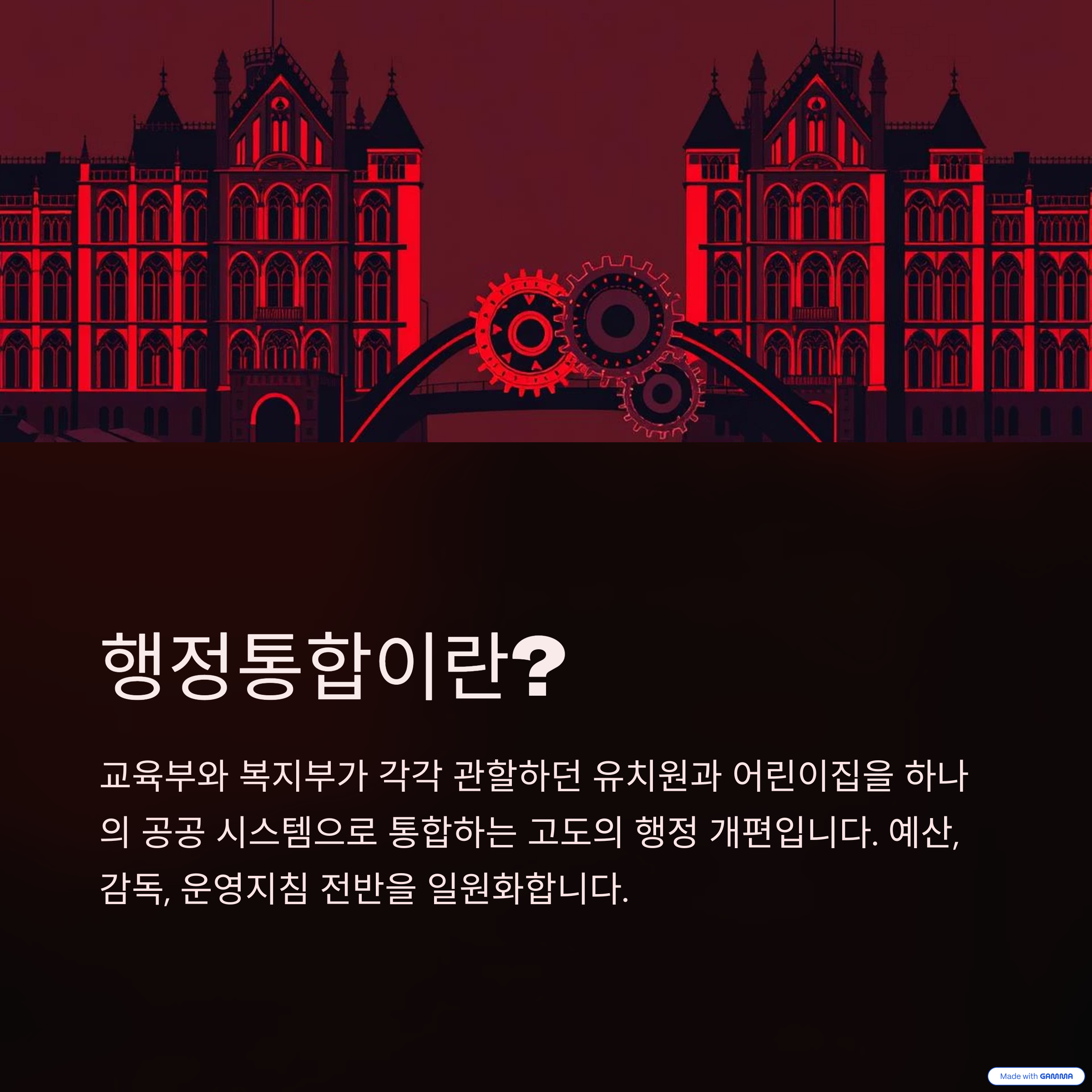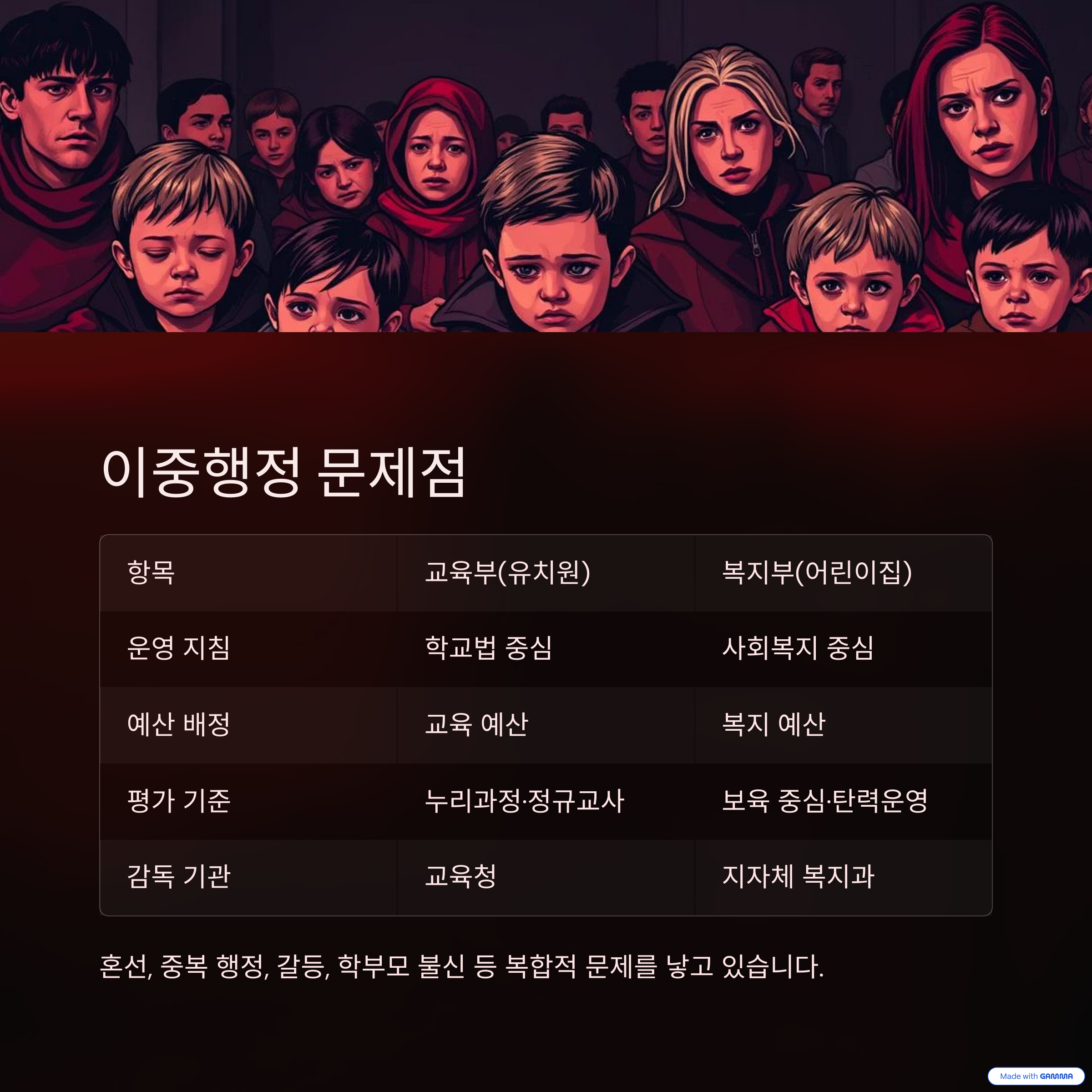 ‘이중행정’ 문제를 해결하기 위한 행정 통합이야말로 유보통합의 본질적인 과제입니다.