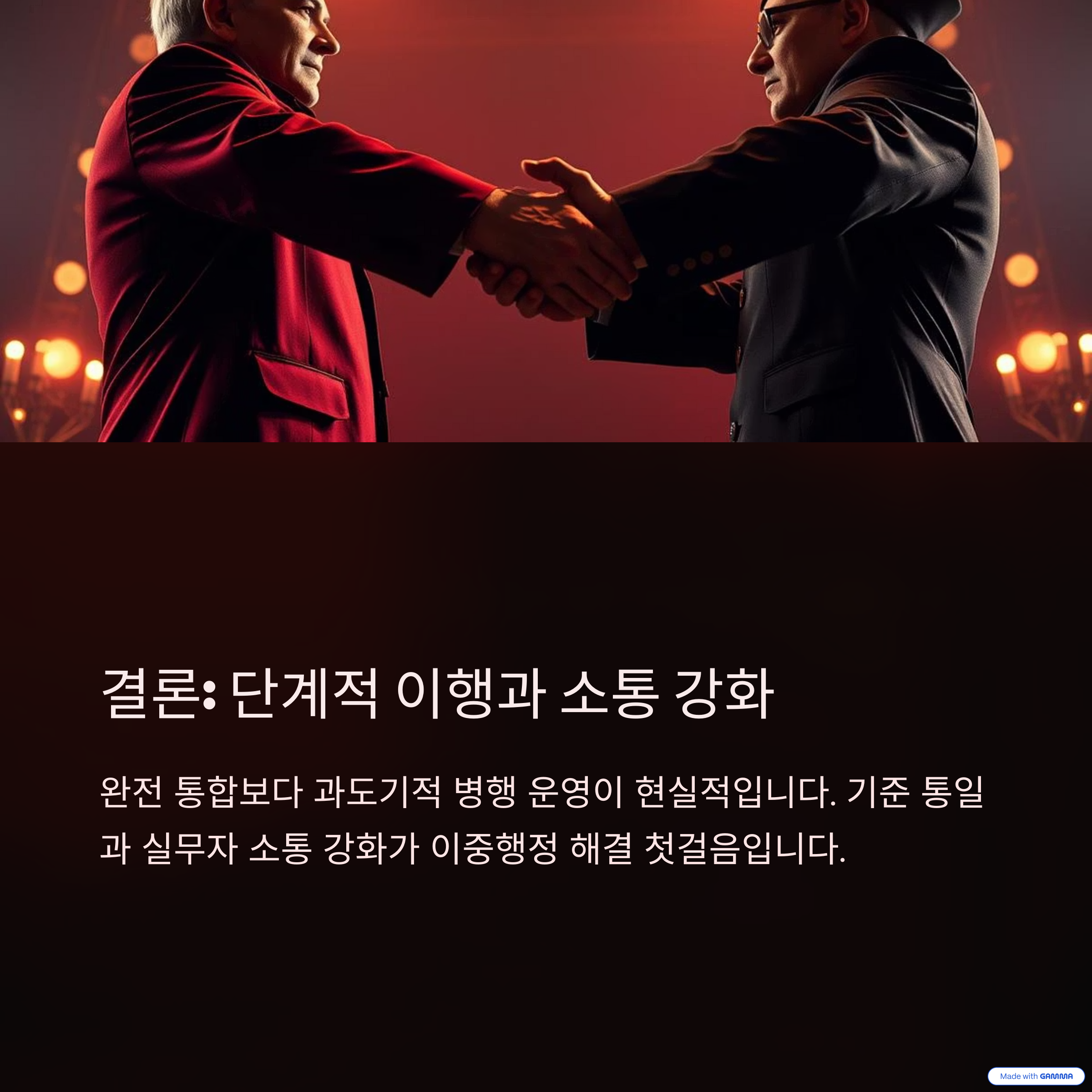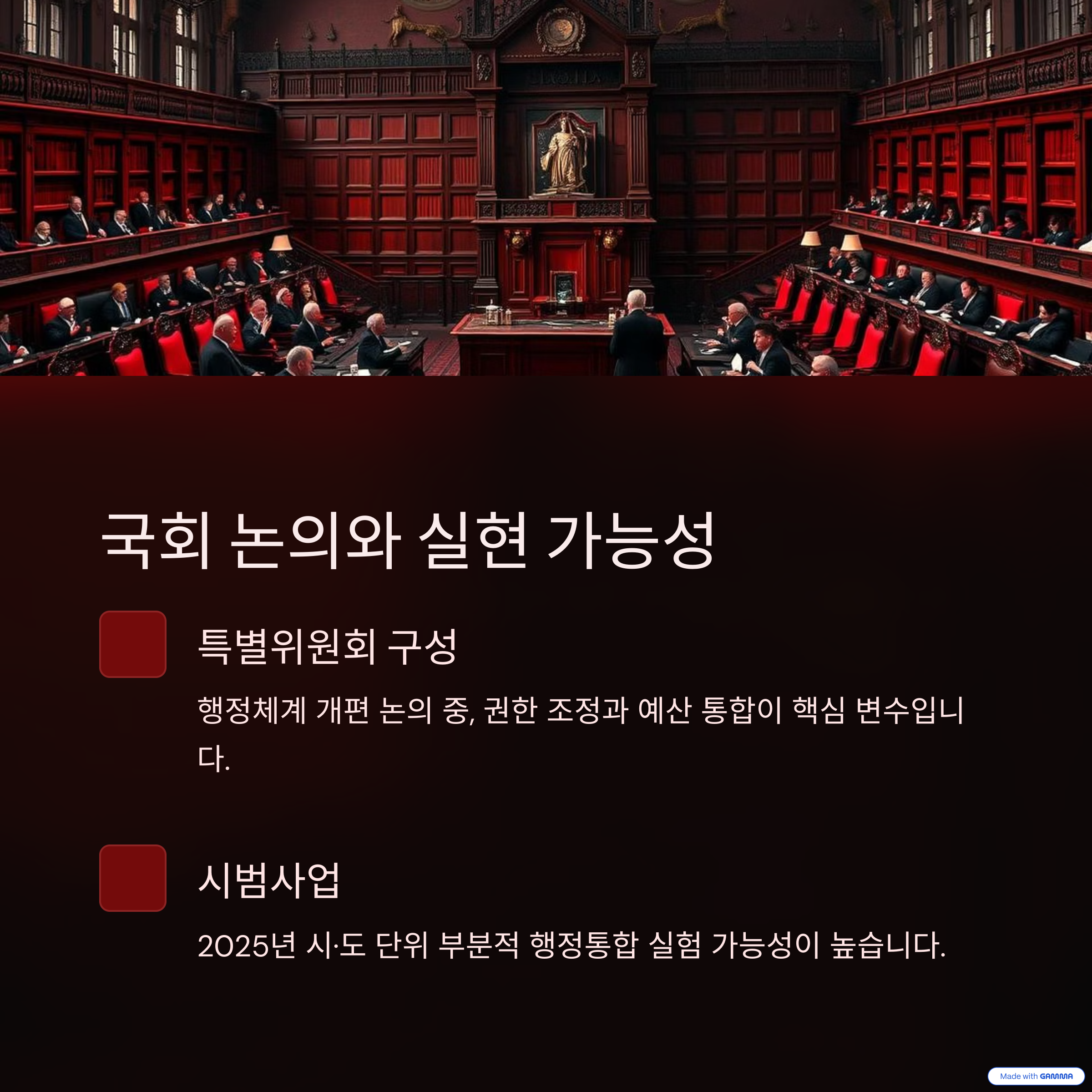현재 논의 중인 행정 통합 시뮬레이션과 함께, 이중행정 해소 가능성을 현실적으로 분석해보겠습니다.