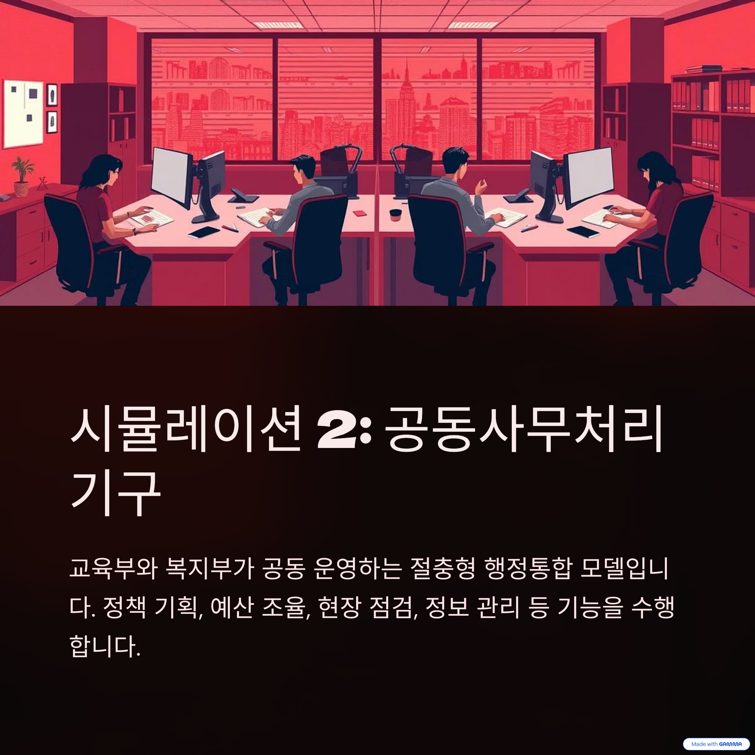 교육부·복지부 공동 운영 기구를 설립하여 행정통합을 시도하는 방식도 논의 중입니다.