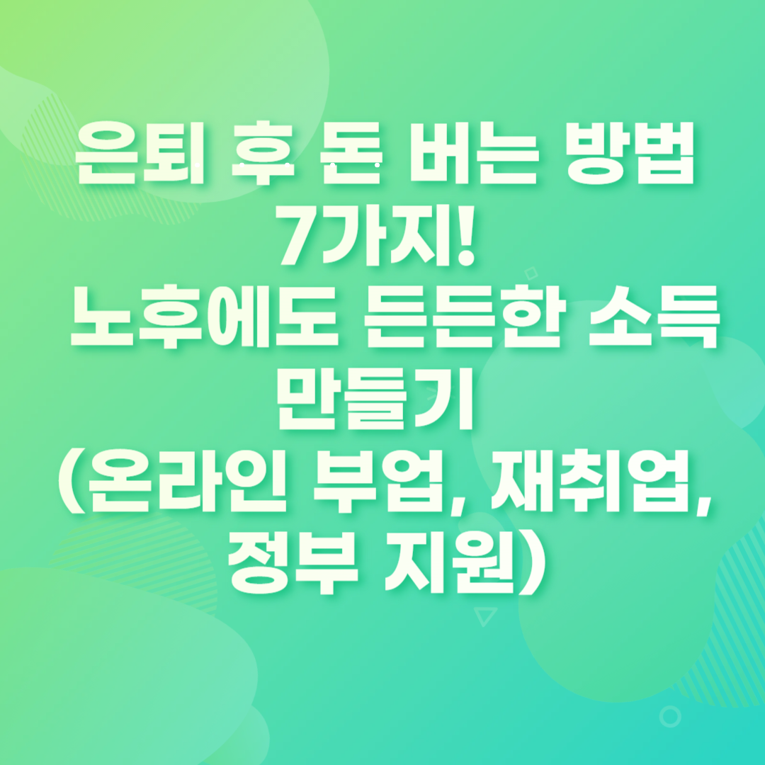은퇴 후 돈 버는 방법 7가지! 💰 노후에도 든든한 소득 만들기 (온라인 부업, 재취업, 정부 지원)