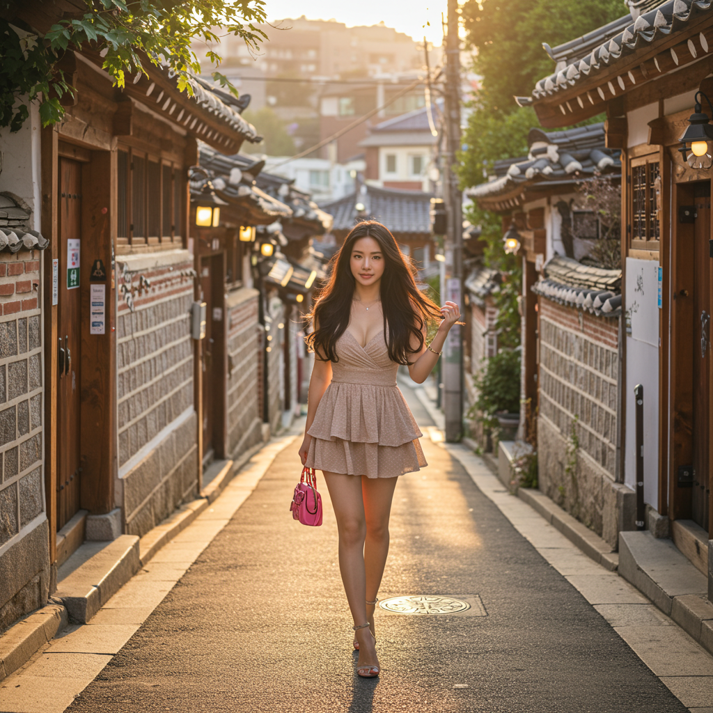 카페, 소품 가게, 전통 한옥이 차분히 배치되어 시간이 느리게 흐르는 듯한 감성을 전달합니다.
