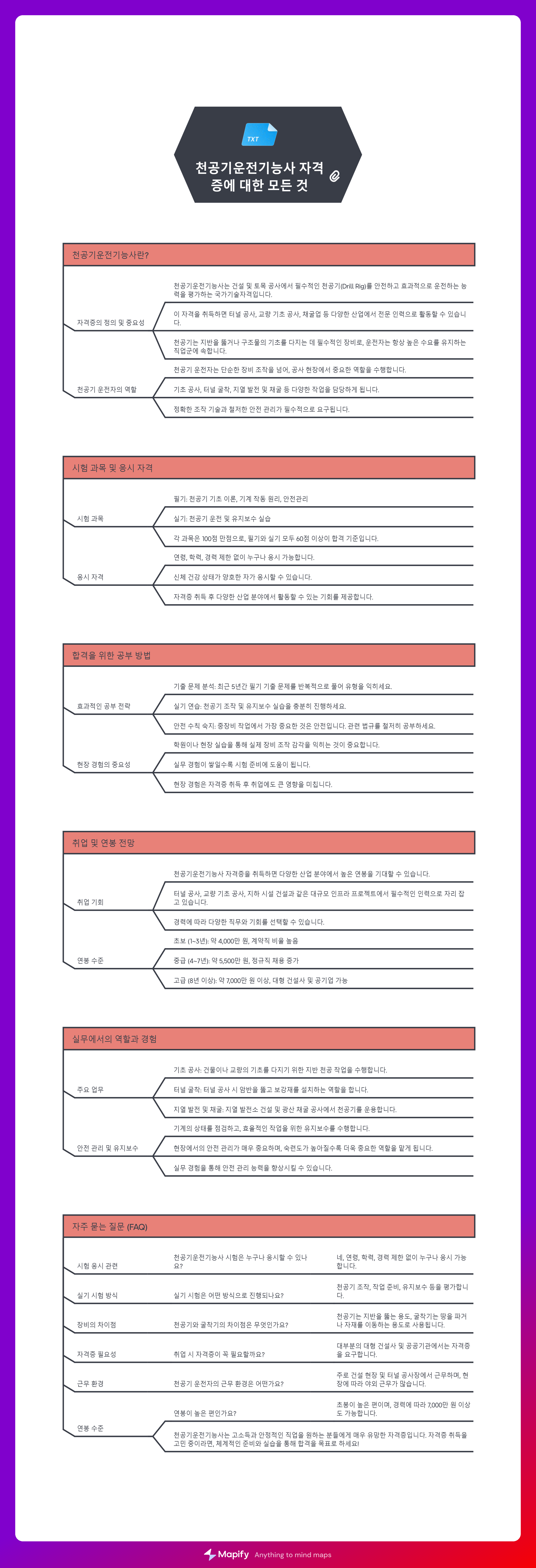 천공기운전기능사는 건설 및 토목 공사에서 필수적인 천공기(Drill Rig)를 안전하고 효과적으로 운전하는 능력을 평가하는 국가기술자격입니다. 이 자격을 취득하면 터널 공사, 교량 기초 공사, 채굴업 등 다양한 산업에서 전문 인력으로 활동할 수 있습니다.