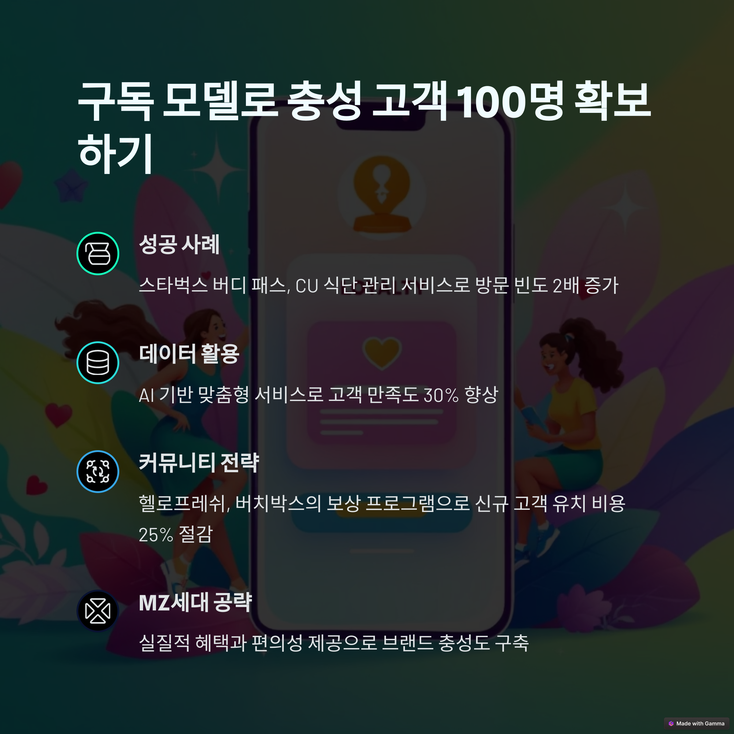 구독 모델은 지속적 가치 제공을 통해 충성 고객을 만드는 데 중요한 전략입니다.