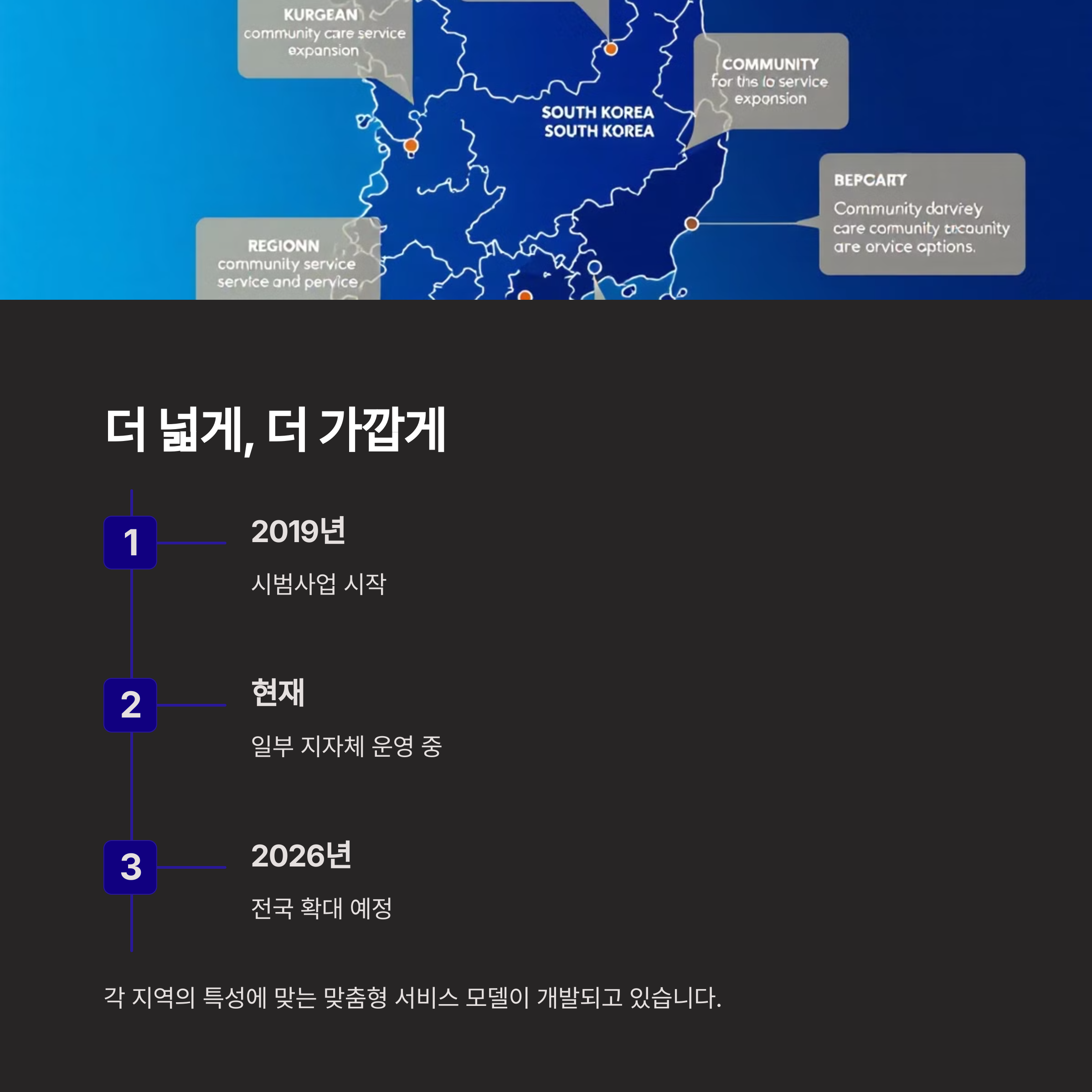 커뮤니티 케어는 단순한 복지 지원을 넘어, 보다 인간적인 돌봄을 제공하는 것이 목표입니다. 기존의 요양원 중심 돌봄에서 벗어나, 자택에서 건강한 삶을 유지할 수 있도록 돕는 것이 핵심입니다. 2026년 이후에는 전국적으로 확대될 예정이며, 이에 대한 지속적인 관심과 참여가 필요합니다.