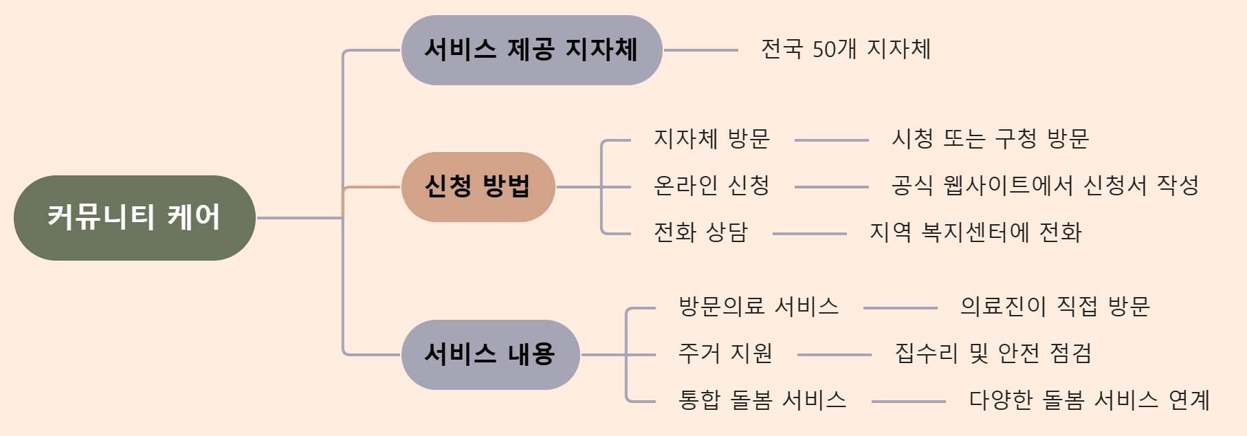 | 커뮤니티 케어란? | 취약계층을 위한 통합 돌봄 시스템입니다. |