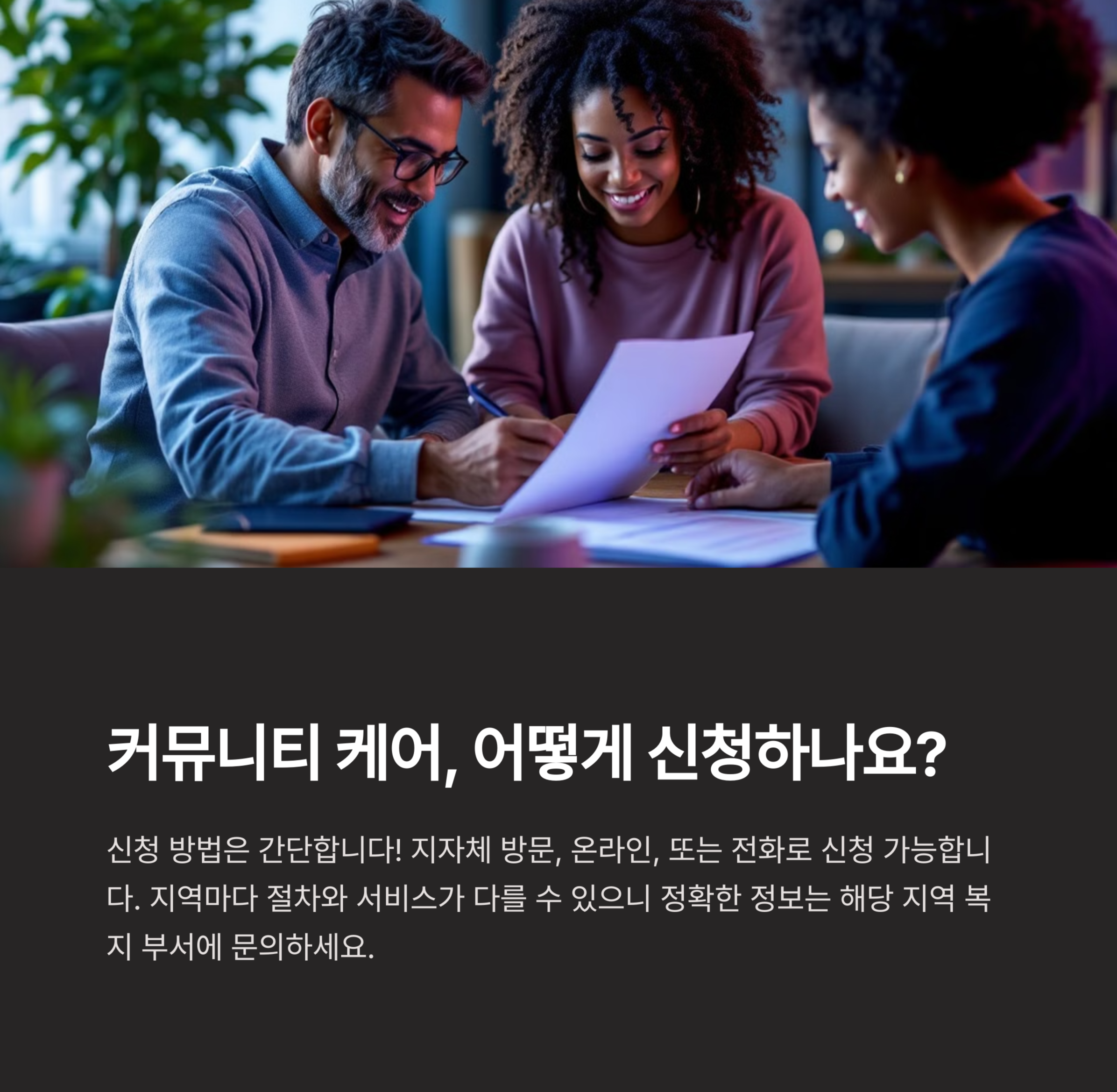 현대 사회에서 돌봄 서비스는 단순한 복지 지원을 넘어 개인의 삶의 질을 높이는 중요한 역할을 합니다. 특히, 고령화 사회가 빠르게 진행됨에 따라 노인뿐만 아니라 장애인, 정신질환자, 노숙자 등 다양한 취약계층을 위한 보다 체계적이고 통합적인 지원이 필요합니다. 이에 따라 정부는 2025년까지 '커뮤니티 케어' 시스템을 구축하고, 2026년부터 전국적으로 확대 시행할 계획입니다. 이 글에서는 커뮤니티 케어의 핵심 개념과 서비스 내용, 그리고 신청 방법 및 주의할 점을 자세히 소개하겠습니다.