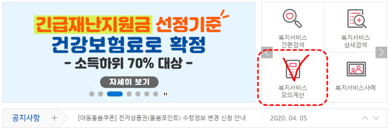 2. 복지서비스 모의계산 탭으로 들어가시구요.