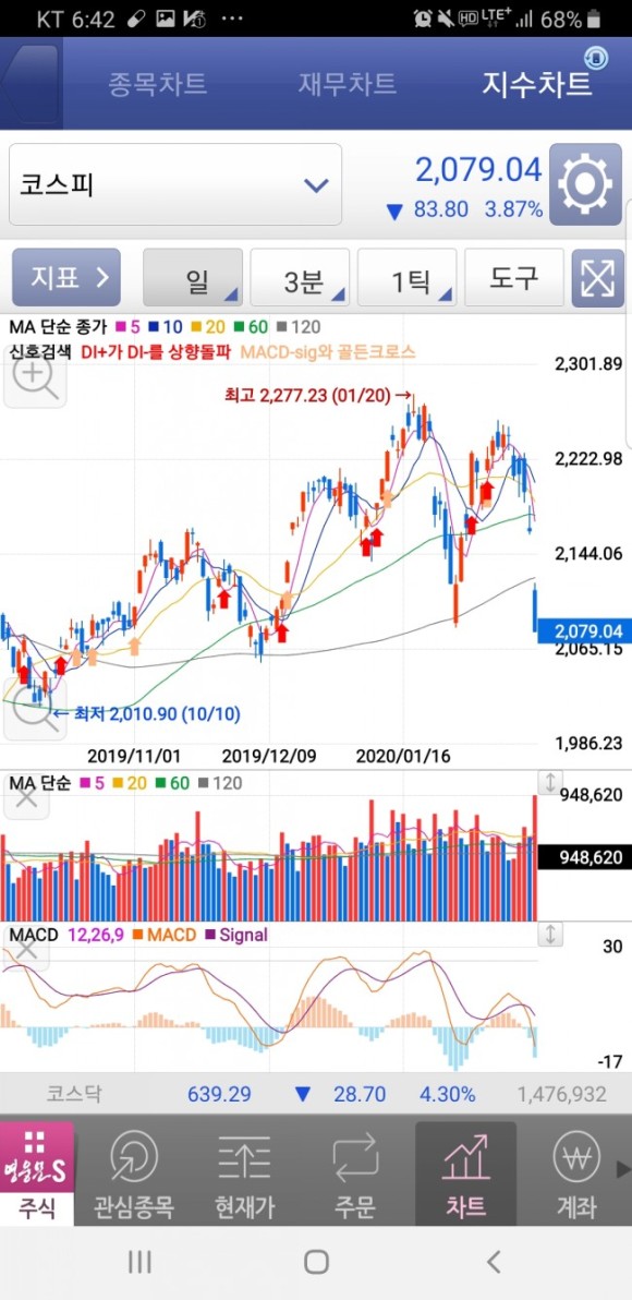 한국 주식 시장 지수가 저렇게 내려오는것을 본지가 정말 몇년만인지 모릅니다
