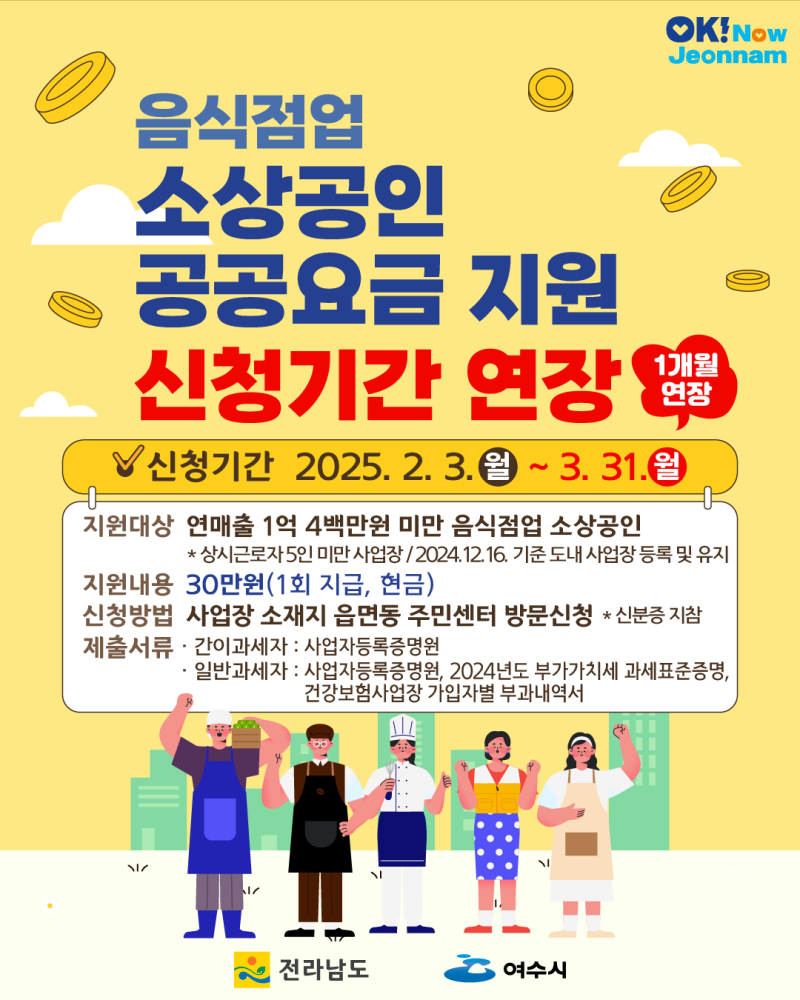 📢 여수시 음식점 사장님들 필독! 공공요금 30만원 지원 놓치지 마세요! (신청 한 달 연장!)