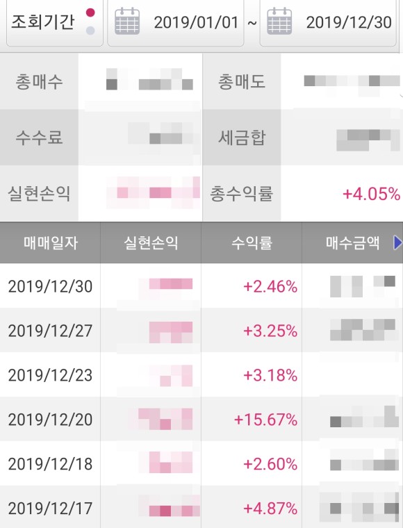 2019년 전체 평균 수익률은 +4.05%로 마감을 했습니다.