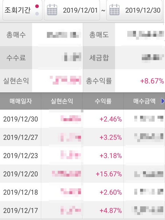 12월 매매일수는 작았지만, 그럭저럭 좋게 마무리 되었네요.