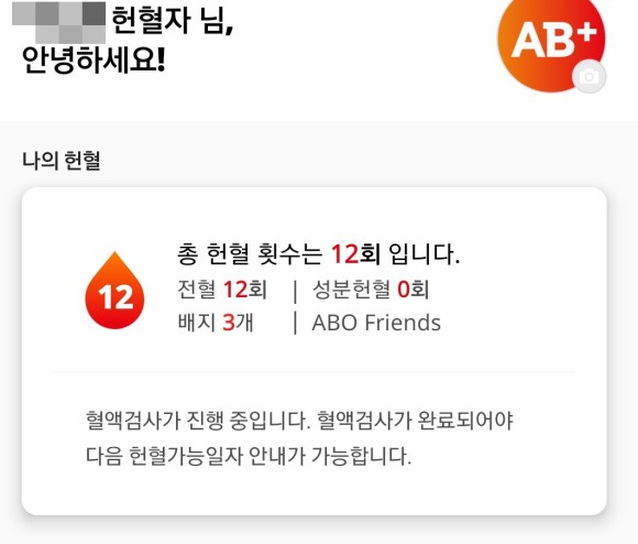 그리고 총 헌혈 횟수는 12회로 나오네요.