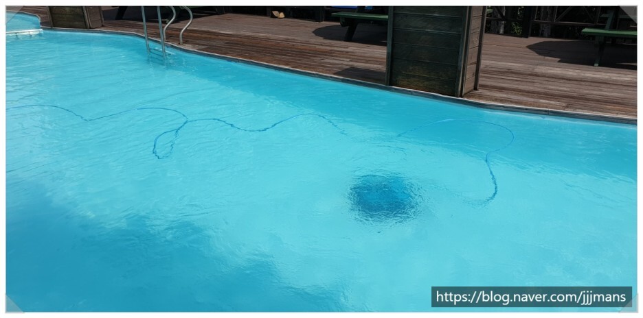 저녁 7시가 되니, 수영장 퇴실을 하는데 이상한 로봇이 수중에서 움직이고 있습니다. 처음에는 무슨 동물이 안에서 놀고 있나 한참 보고 있으니 수영장 청소하는 수중로봇이었습니다.