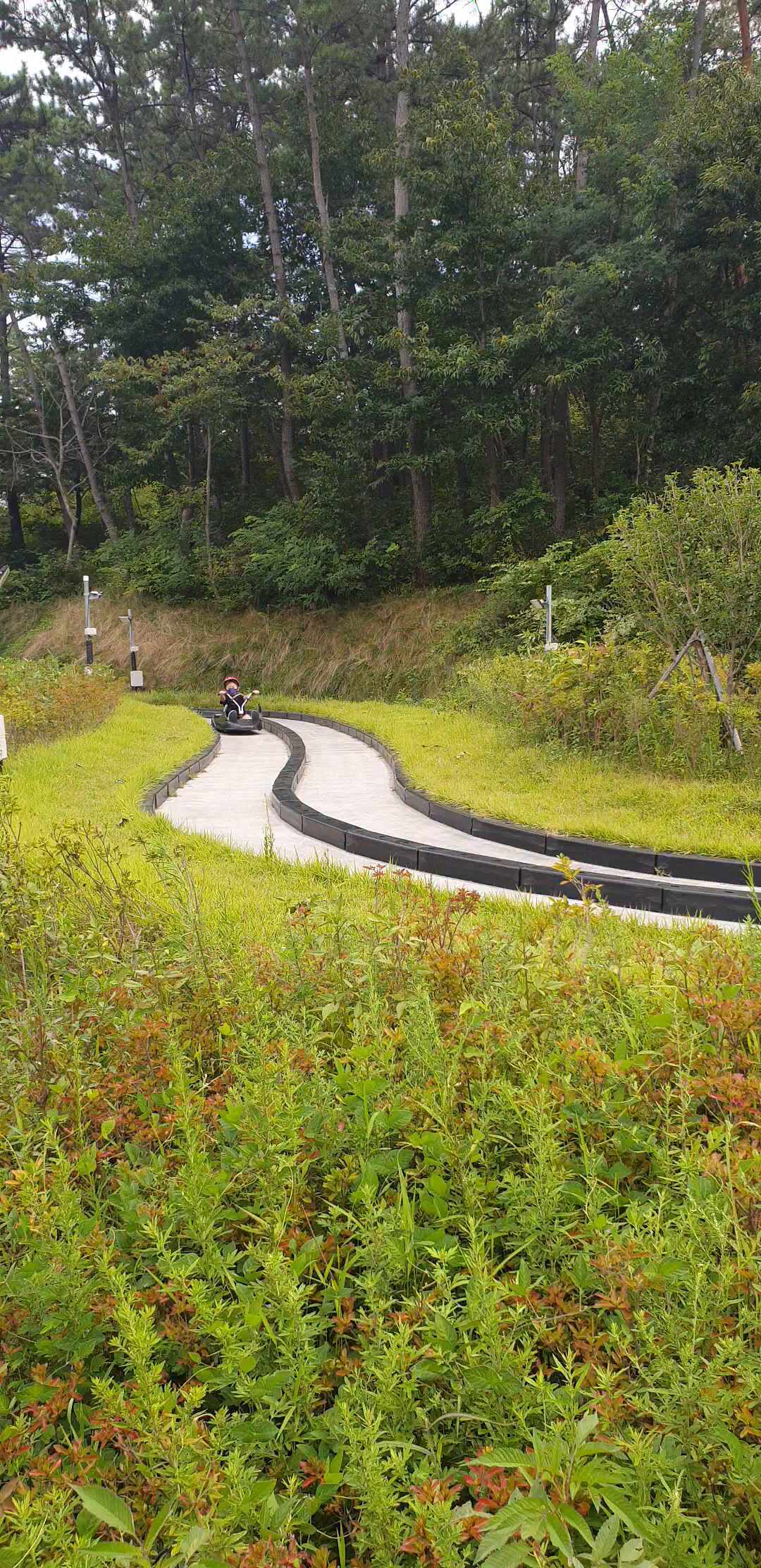 한 바퀴 빙~~ 돌고, 내려와서 아이스커피 한 잔씩 먹고 책도 조금 보다가 미리 예약해 둔 루지를 타러 가 봅니다.