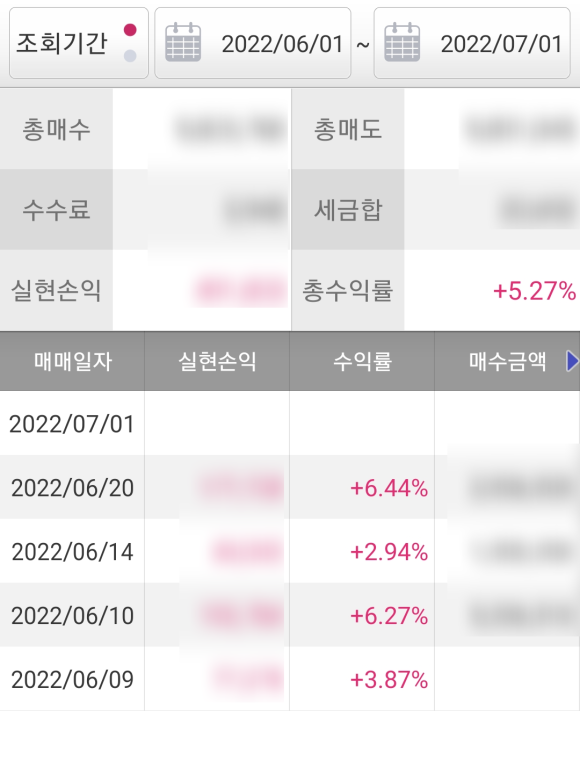 6월달 일지는 +5.27%로 매매일수는 엉망입니다.