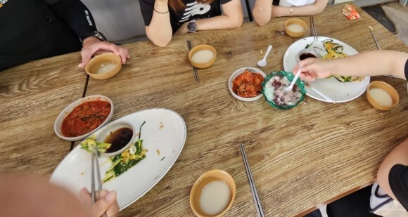 트래킹 초입길에 어찌 한잔하고 가야 해서 동동주에 파전과, 빙수 하나 시켜서 빈속을 좀 채우고 시작하기로 했네요