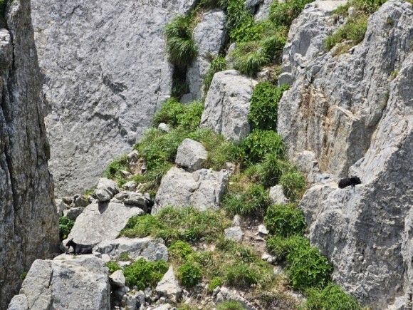 저기 멀리 티비에서 나온 염소가 벼랑 밑에서 자고 있네요