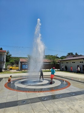 한 30분 남아서 광장 물놀이장에서 물놀이 좀 해 봅니다