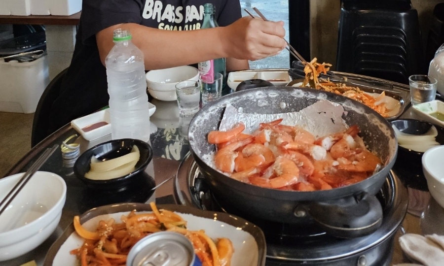 숙소 바로 옆, 문항해수산에서 자리잡고 한잔 합니다