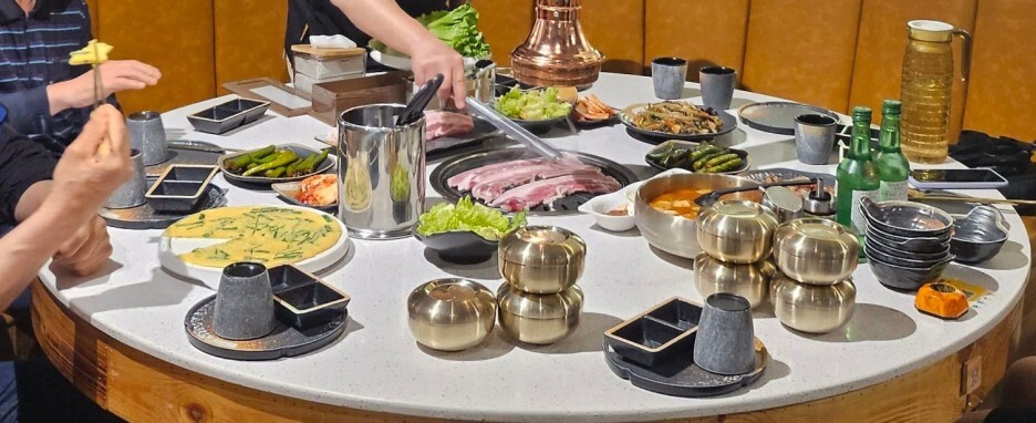 사람은 많은데, 불씨도 좀 약해서 굽고 먹고 대기 하고, 같이 동행하신 어르신께서 소주 3병 사주셔서 같이 잘 먹었네요