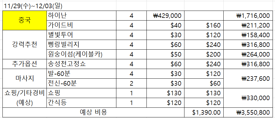 안녕하세요. 정말 너무너무 오랜만에 포스팅 한번 해 보네요. 오늘 드디어 중국 하이난을 출발합니다. 중3인 딸아이 고교 졸업 전에 시간이 거의 없기에 11월 말로서 여행 계획을 했고 무난하게