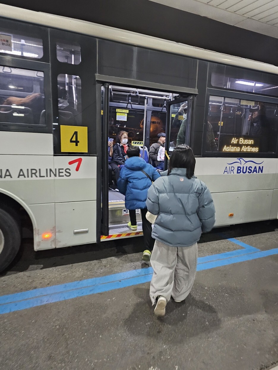 비행기까지 차량으로 이동.