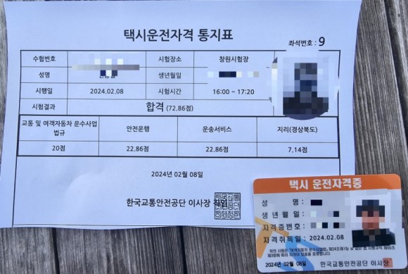 20240208 - 경북 택시운전면허 시험 합격 후기