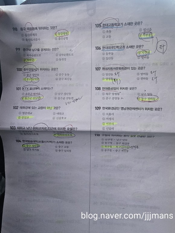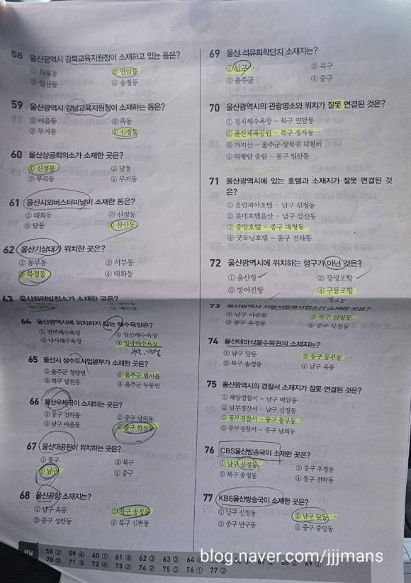울산지리는 오래전에 경남택시 치룰적에 구입했던 교재 문제로 학습했는데, 사진으로 남겨봅니다