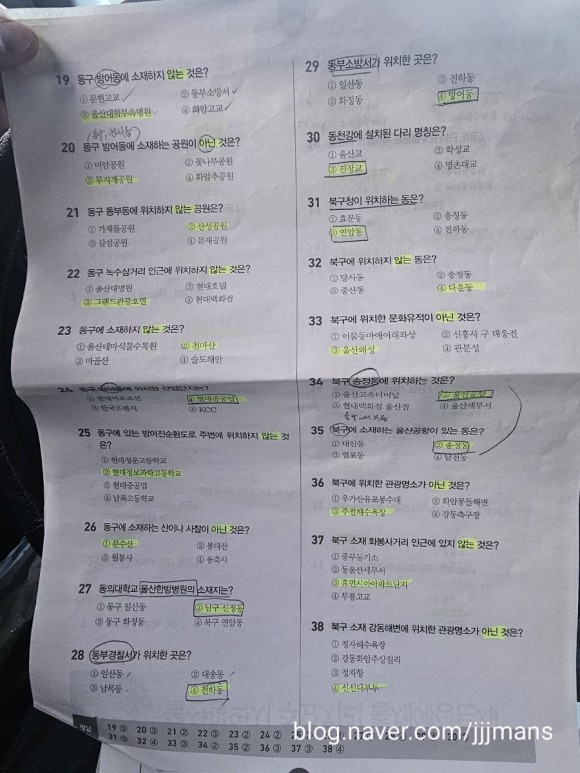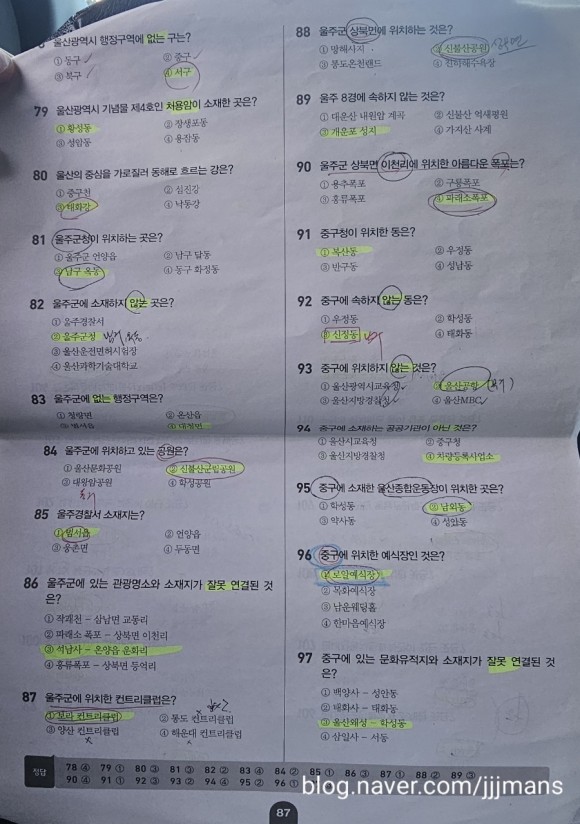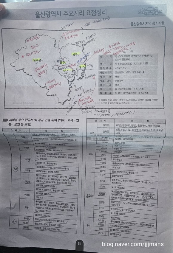 울산지리는 오래전에 경남택시 치룰적에 구입했던 교재 문제로 학습했는데, 사진으로 남겨봅니다