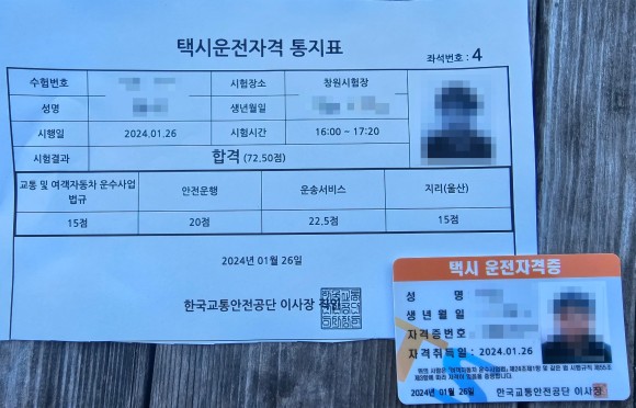 20240126 - 울산 택시운전면허 시험 합격 후기