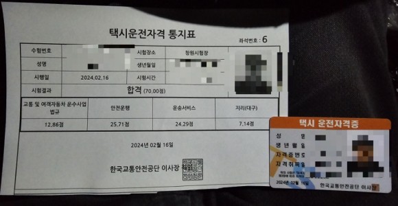 20240215 - 대구 택시운전면허 시험 합격 후기