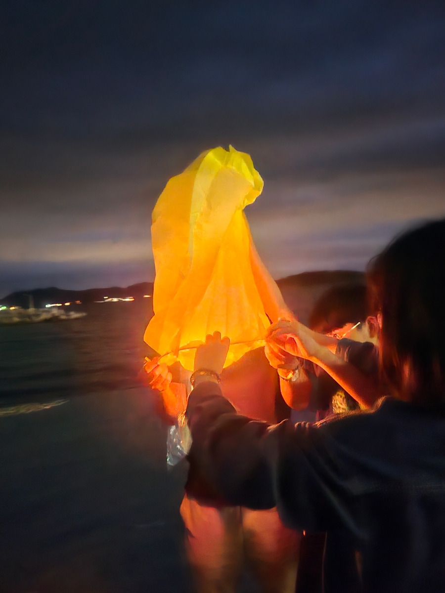 양떼목장에서 하루 보내고 저녁 맛있게 먹고 아들이 가져온 풍등날리기로 남해 바닷가에서 실패했지만 알찬 하루를 마무리합니다