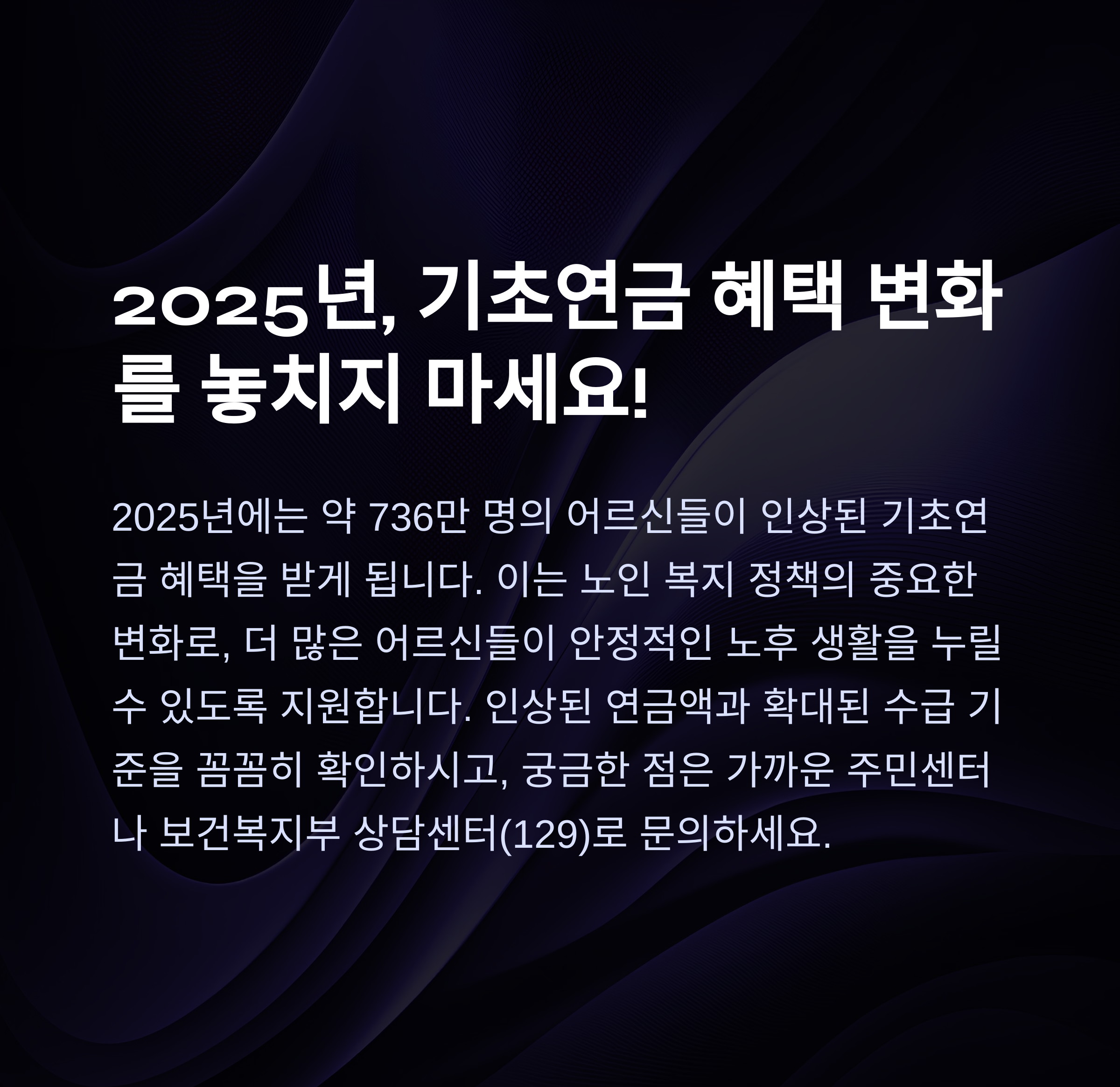 안녕하세요, 여러분! 노후 복지에 대한 관심이 점점 높아지고 있는 요즘, 2025년 기초연금 지급액 인상 소식은 정말 반가운 소식입니다. 이 블로그에서는 기초연금 제도의 주요 변화 사항과 수급자격 확대 내용, 그리고 신청 방법에 대해 상세히 알려드리겠습니다. 함께 확인해 보시죠!