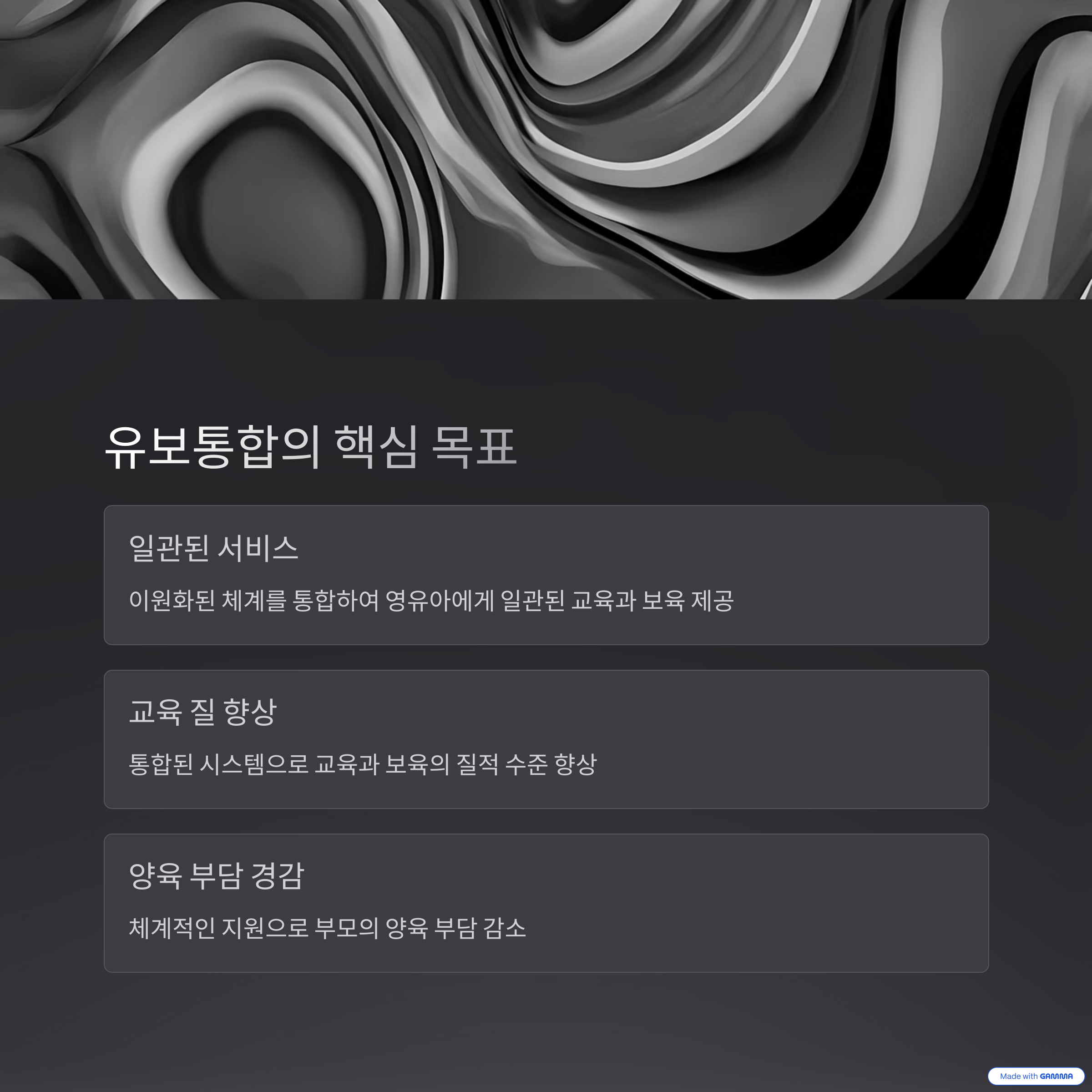 | 향후 계획 | 2025년 통합법 제정, 2026년 유보통합 기관 출범 |