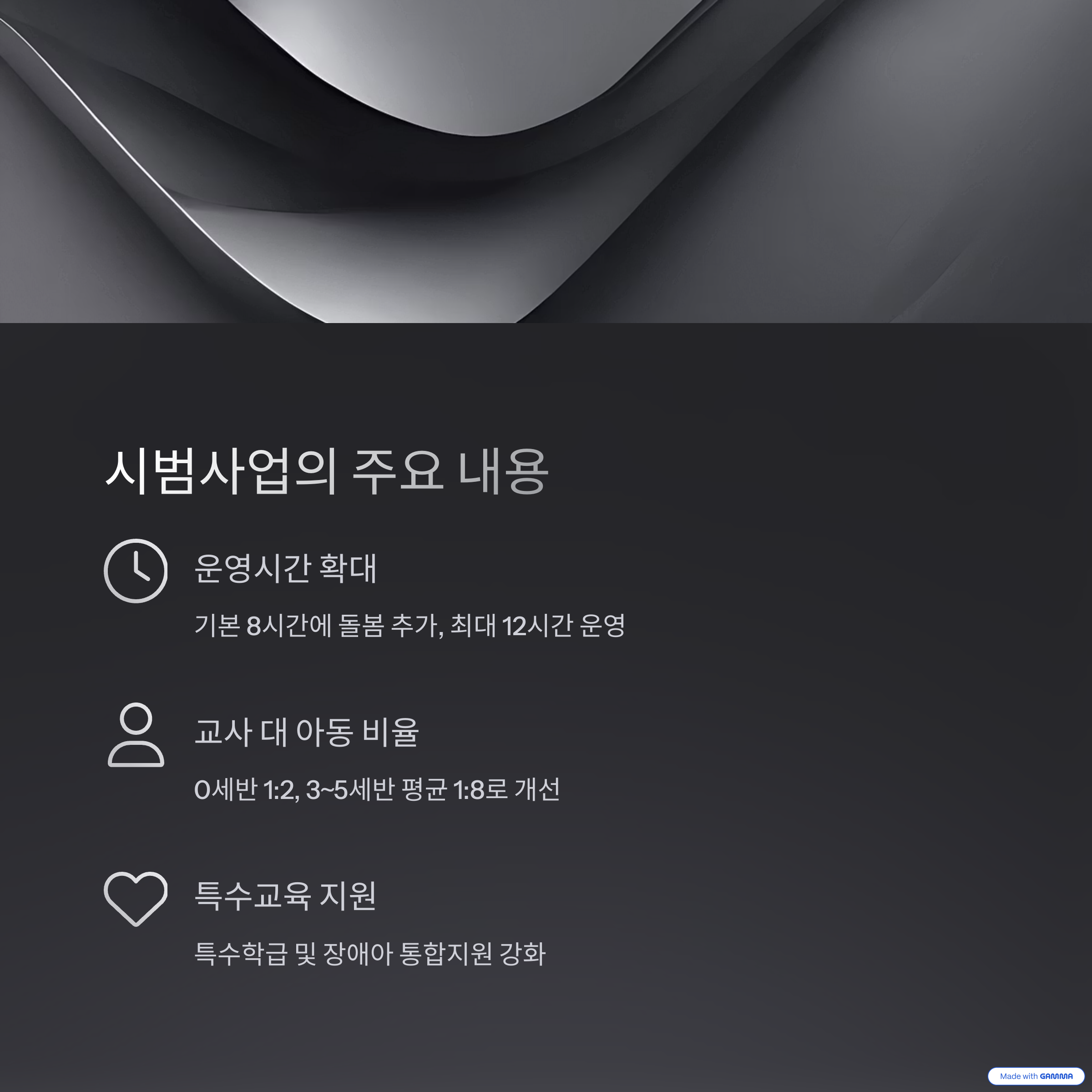 | 주요 내용 | 운영시간 확대, 교사 대 아동 비율 개선, 특수교육 대상 지원 |