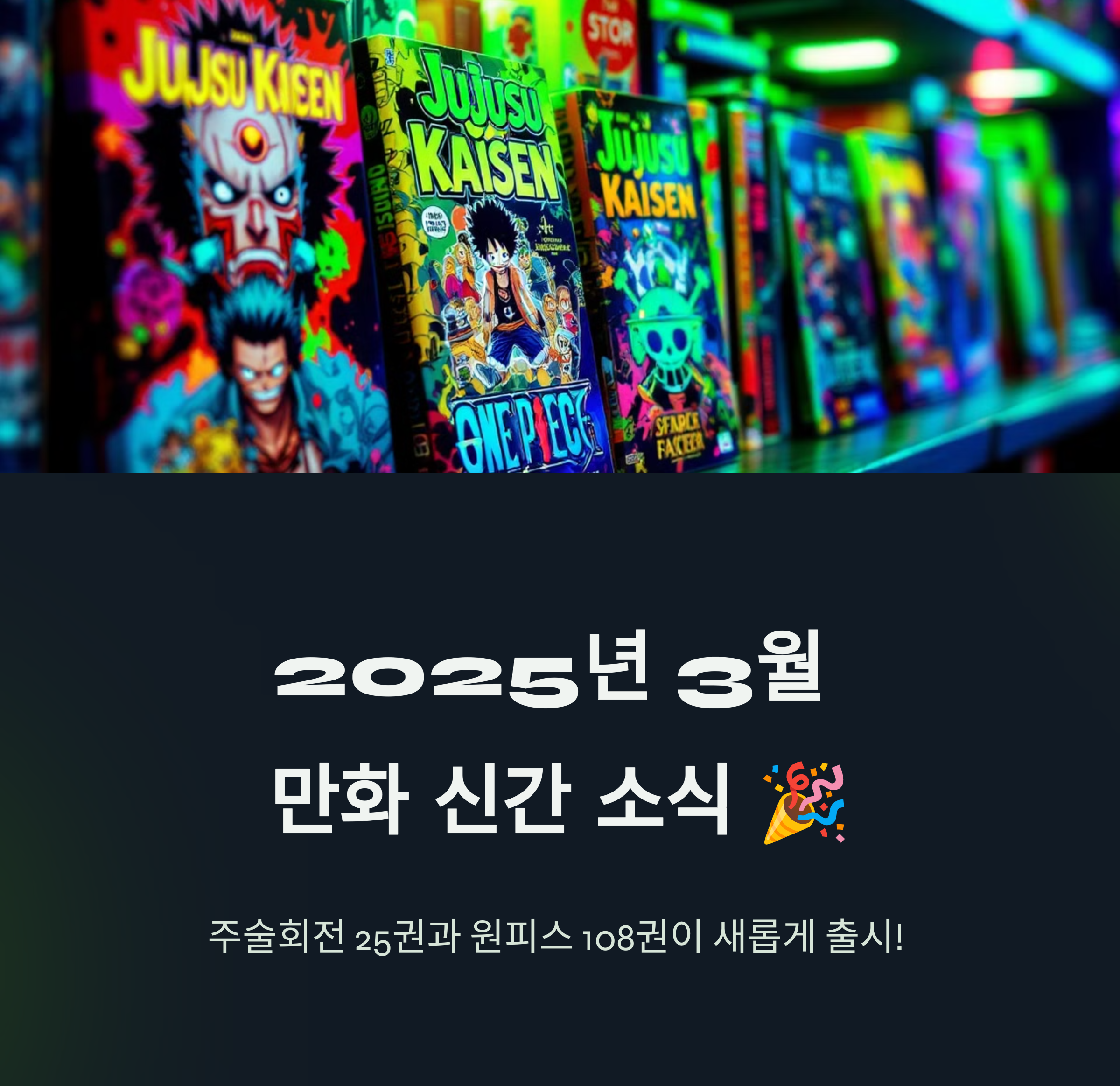 2025년 3월은 만화 팬들에게 정말 흥미진진한 한 달이었습니다! 신간 출시부터 애니메이션화, 다양한 이벤트까지, 볼거리와 이야기할 거리가 가득했죠. Jujutsu Kaisen 25권과 One Piece 108권은 물론, 새롭게 주목받는 신작 만화들도 팬들의 많은 사랑을 받고 있습니다.