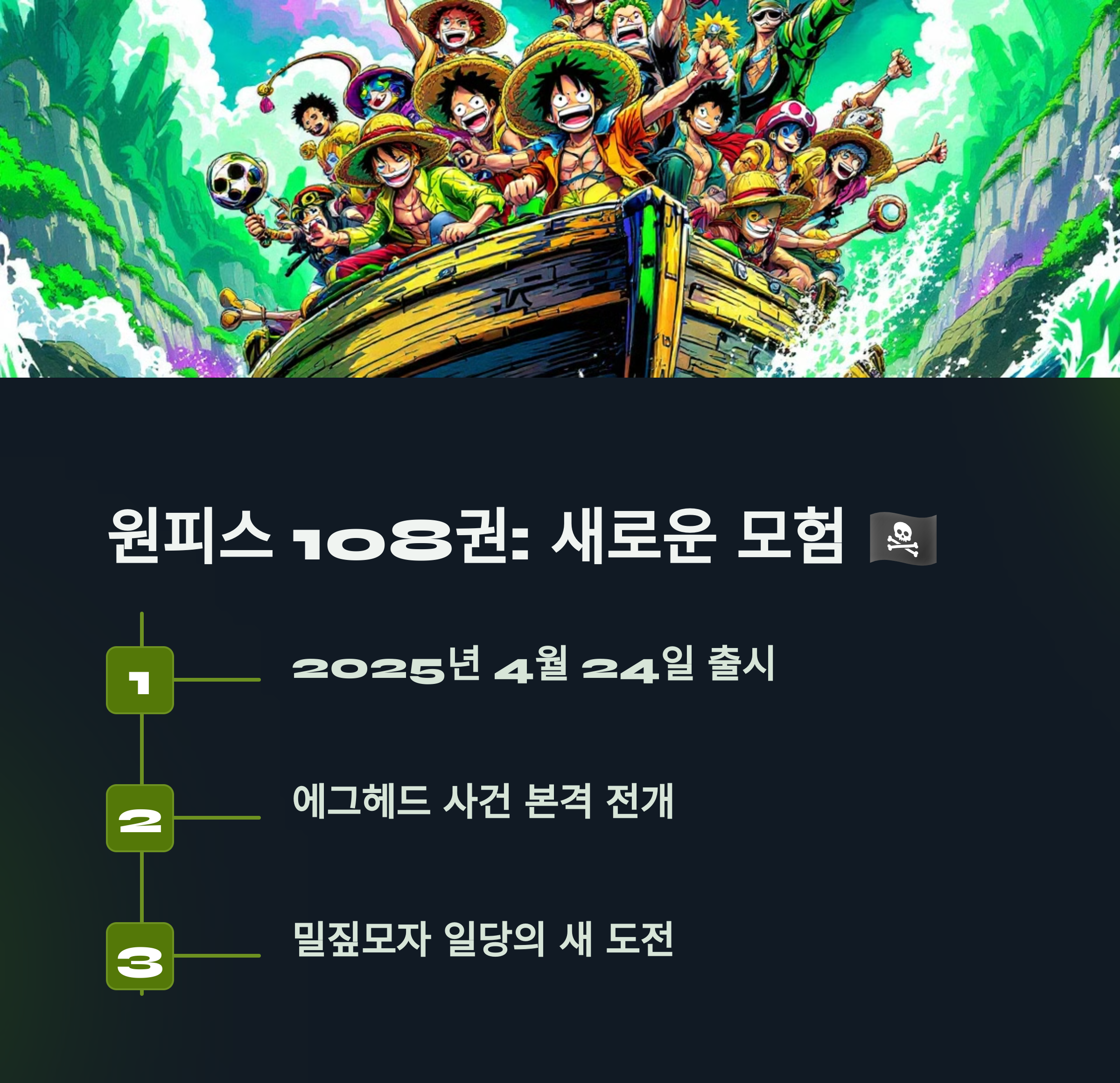| One Piece 108권 | 2025년 4월 24일 (영어판) | 에그헤드 사건 본격 전개 |
