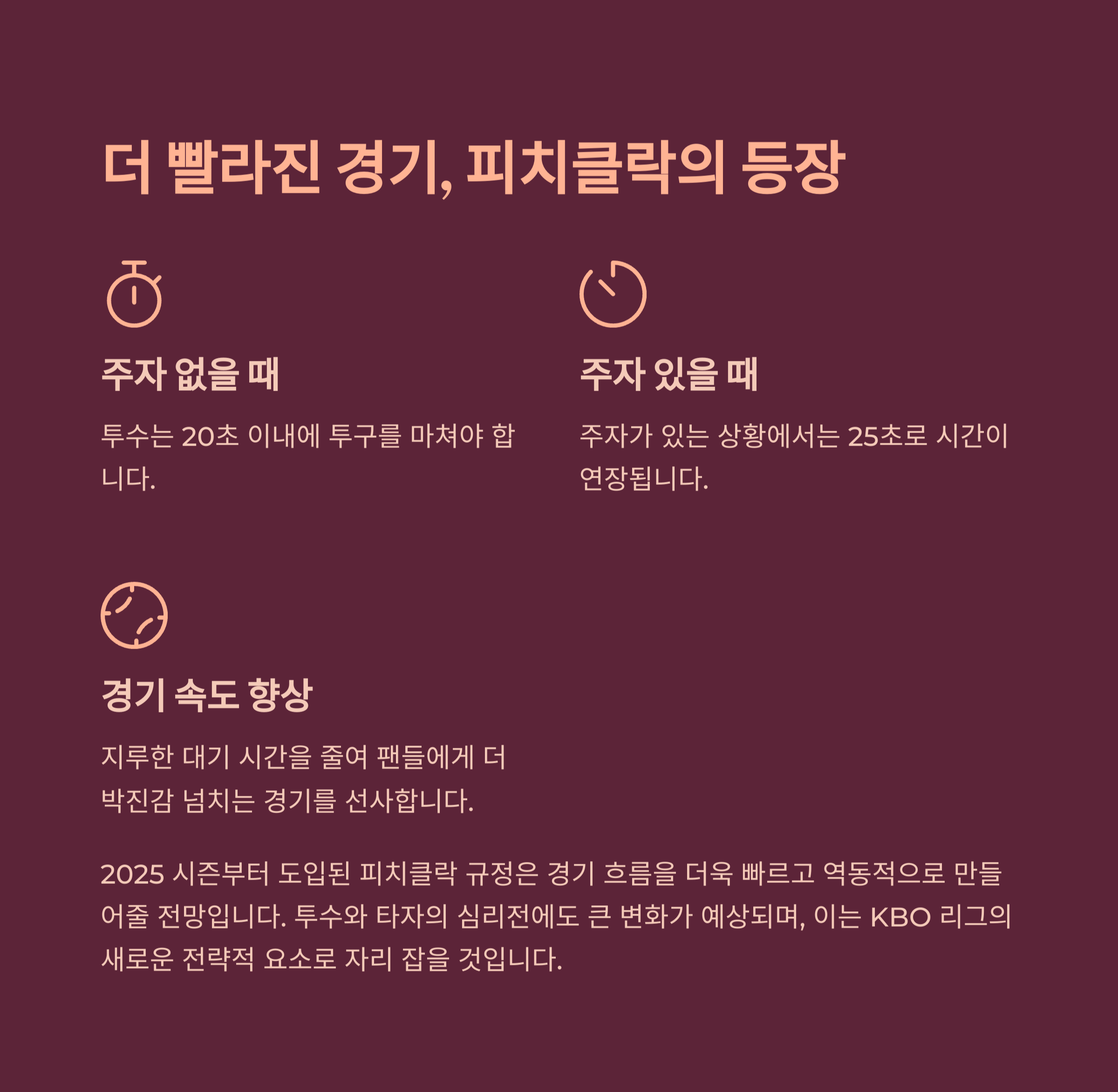 3월 22일 개막! 피치클락 도입과 경기 운영 변화