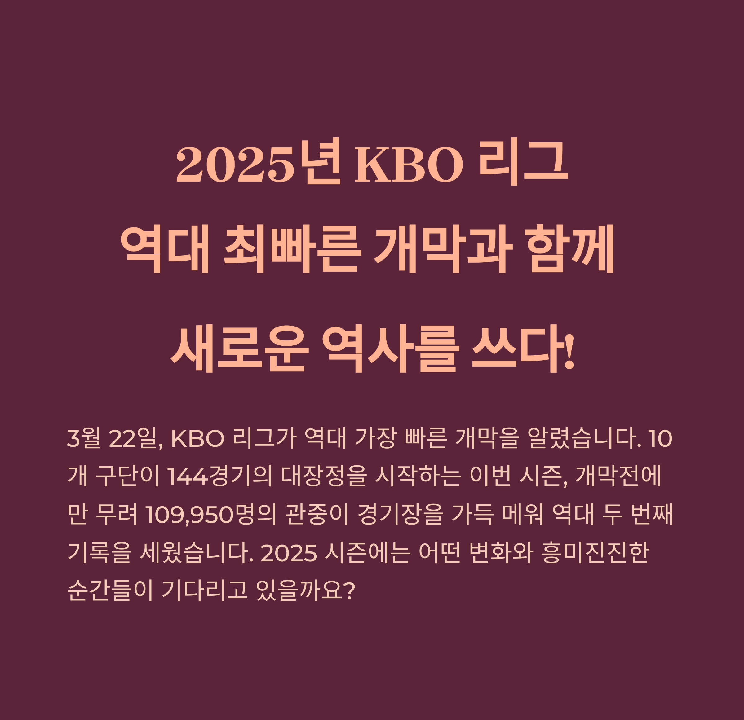 2025년 KBO 리그, 역대 가장 빠른 개막! 새로운 규정과 변화는?