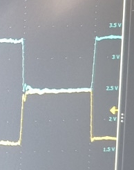 이론적 파형: 2.5V를 중심 전압으로 하여 CAN_H는 3.5V, CAN_L는 1.5V로 나오는 것이 이상적인 파형의 모습니다.