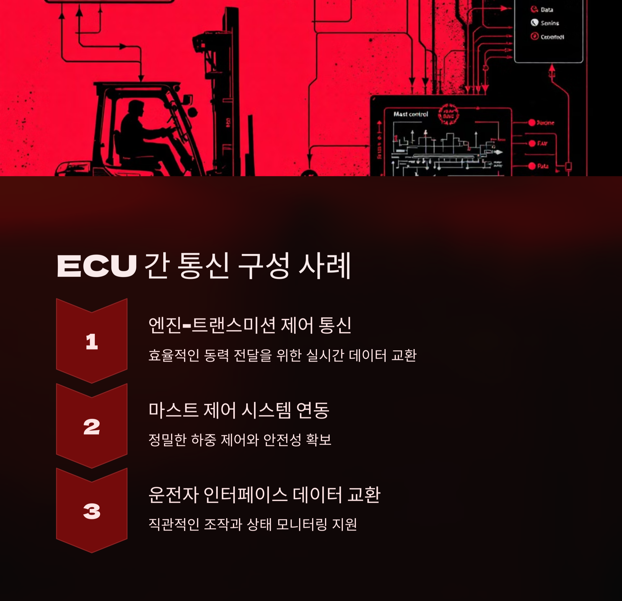현대 산업용 지게차는 단순한 기계 장비를 넘어 첨단 전자 시스템의 복합체라고 할 수 있습니다. 엔진, 트랜스미션, 유압 시스템, 조향 장치, 마스트 제어, 안전 시스템, 운전자 인터페이스에 이르기까지 다양한 구성 요소가 유기적으로 작동해야 합니다. 이러한 복잡한 시스템을 효율적으로 통합하기 위해서는 견고하고 표준화된 통신 프로토콜이 필수적입니다.